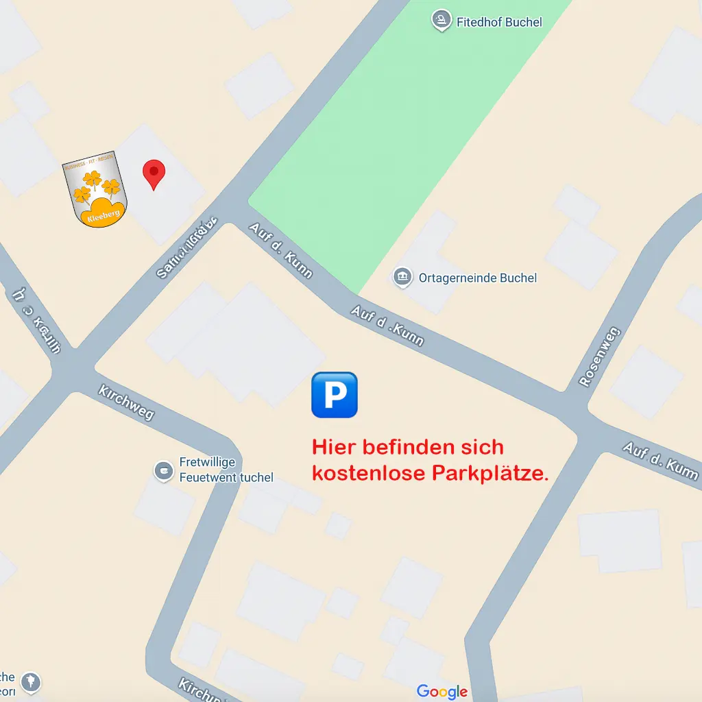 Ein kostenfreier Parkplatz befindet sich zwei Straßenblocks vor unserem Büro (siehe Abbildung).